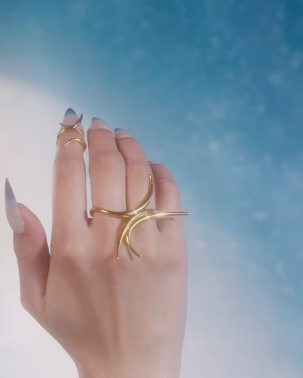 Trendiger, goldfarbener Midi-Ring mit Spikes: hochwertiger Schmuck-Eye-Catcher, perfektes Layering-Accessoire für individuelle Styles und rockigen Glam-Look.