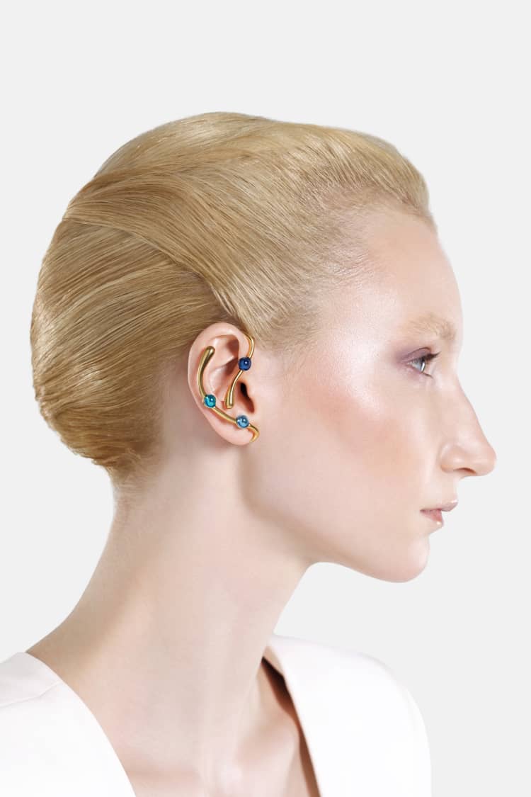 Elegante Casa Batlló ganze Ohrklemme in Gold: kunstvolles Schmuckstück, inspiriert von Gaudís Meisterwerk, veredelt jedes Outfit mit exklusivem Glanz.