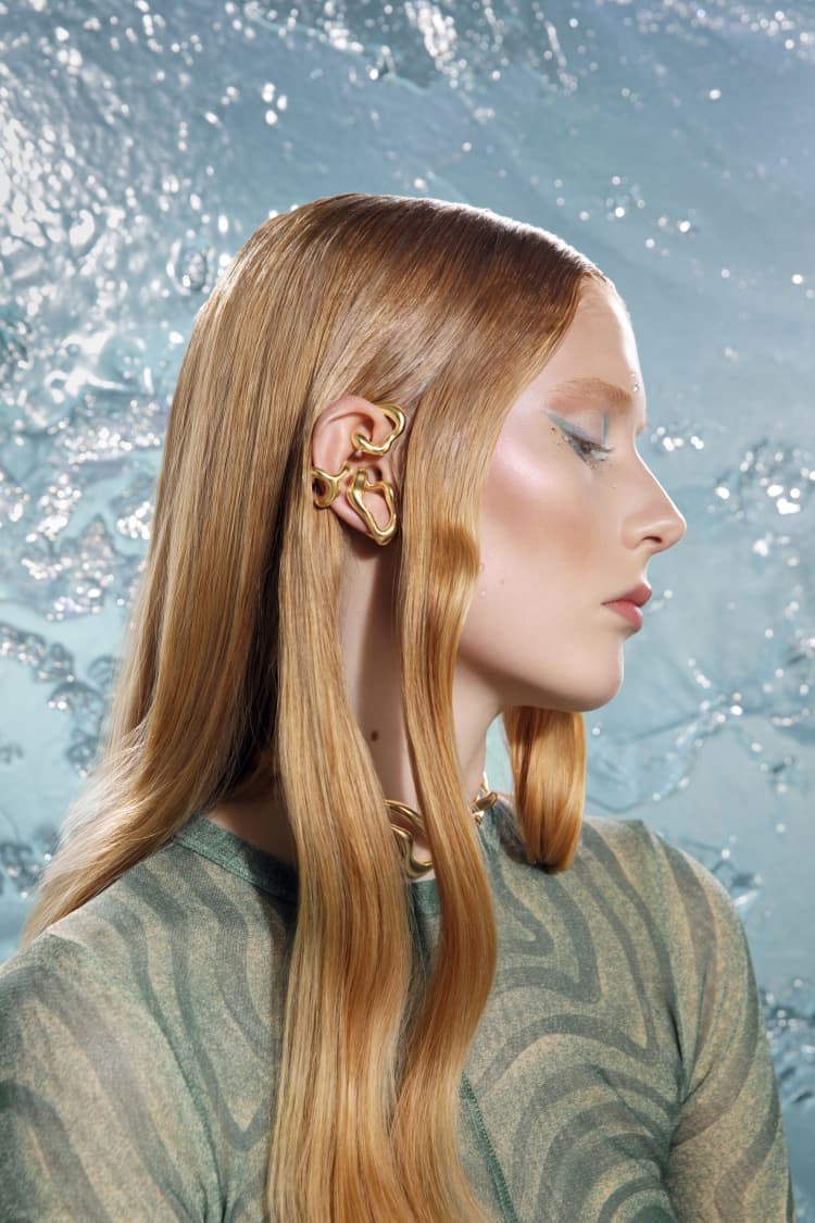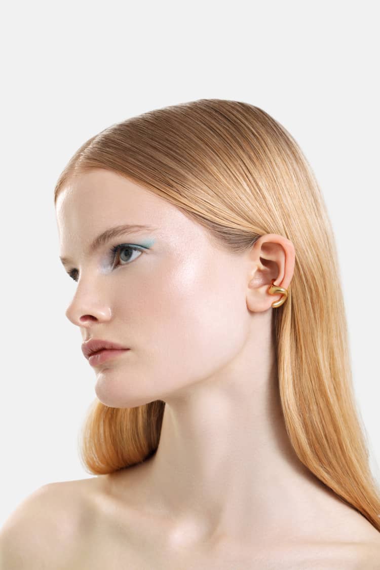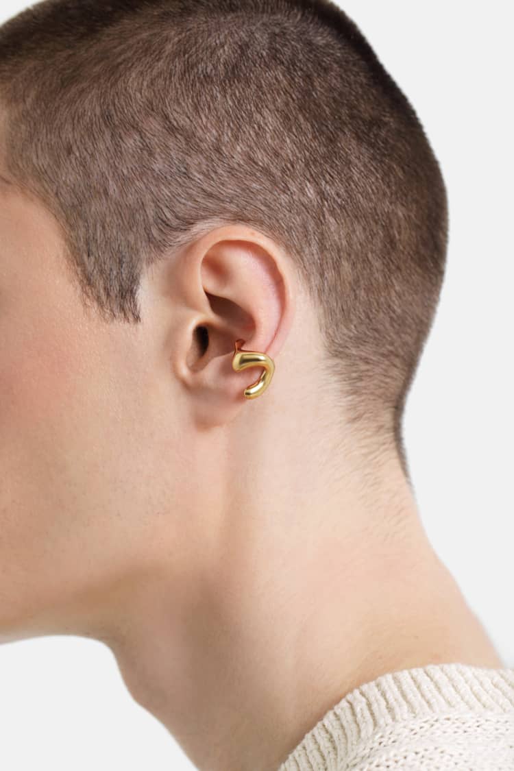 organischer ohrclip in c-form aus gold