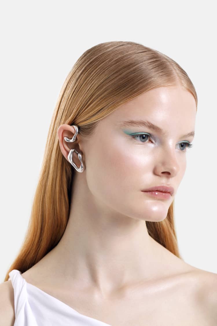 organischer ohrclip zum umwickeln aus silber