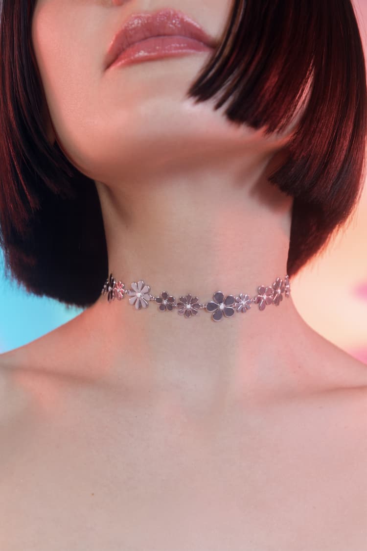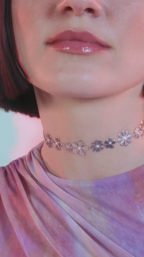 Silberne Blumen-Choker-Halskette