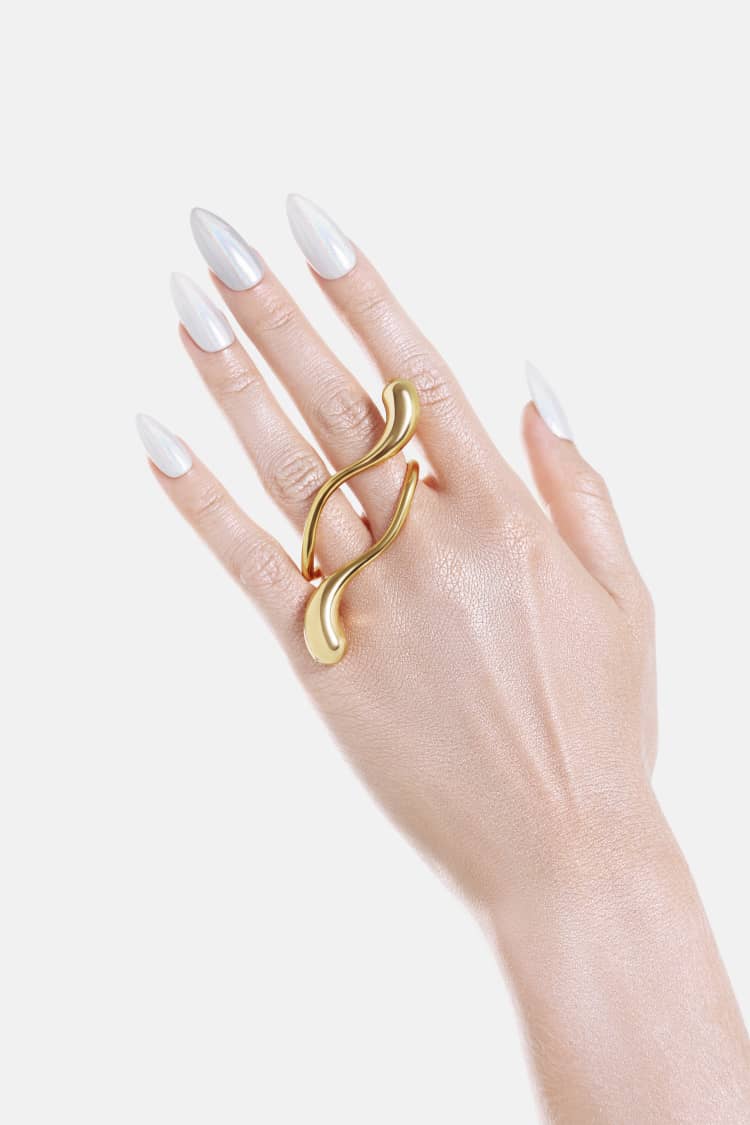 Exklusiver Doppel-Finger-Tropfen-Ring aus Gold: modernes Schmuck-Statement, handgefertigt, hautfreundlich, langlebig – perfektes Geschenk & Eyecatcher.