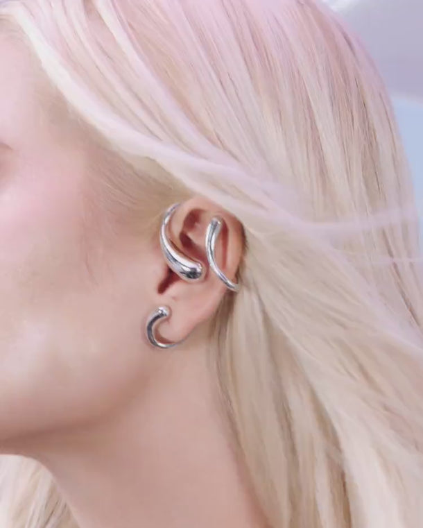 Entdecke den eleganten Full-Ear-Tropfen-Earcuff in Silber – handgefertigter Schmuck, federleicht, nickelfrei, perfekter Halt für ein stylisches Statement.