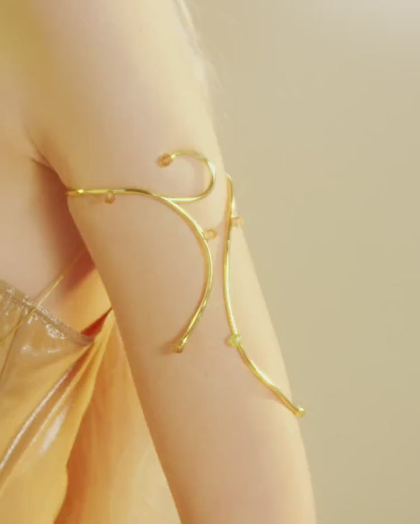 Goldene Armspange mit Opal- und Topas-Kristallen